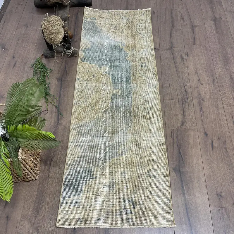 1,9x5,5 ft Beige & Blauer Blumenteppich, elegante Wohndekoration