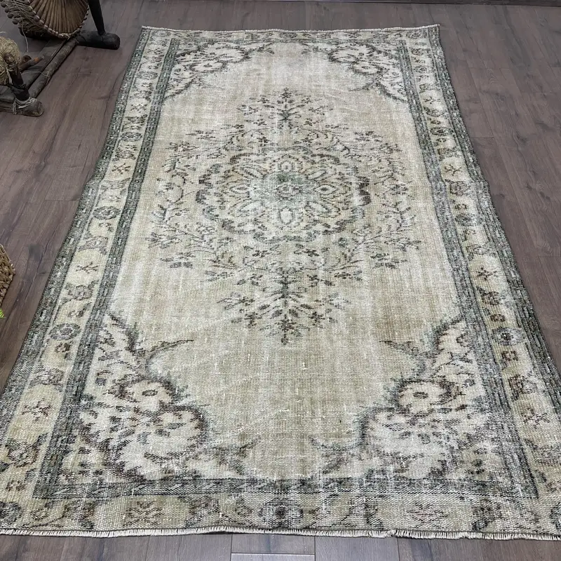 Eleganter Teppich in Beige und Grün, 5,1 x 7,9 Fuß, abstraktes Design