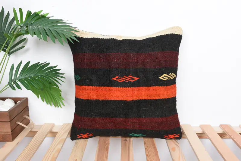 Geometrisches Kissen in Orange und Braun, handgefertigtes Leinenkissen