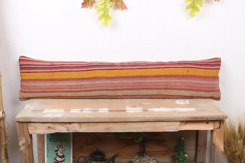 Rot & Orange gestreiftes Kissen, handgefertigtes besticktes Kissen