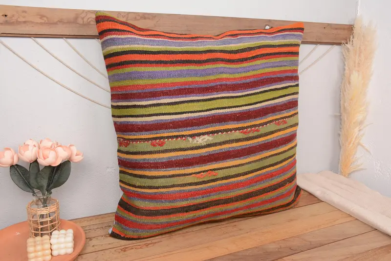 Grün und rot gestreiftes Kissen, besticktes Vintage-Wurfkissen