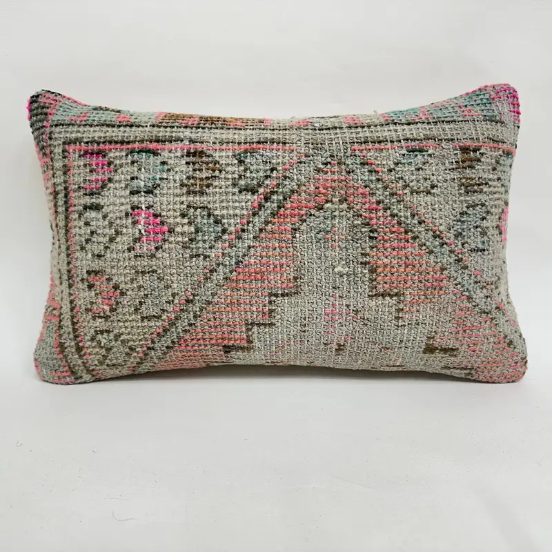 Handgefertigtes grünes und rotes Blumenkissen, 12x20 Leinenkissen