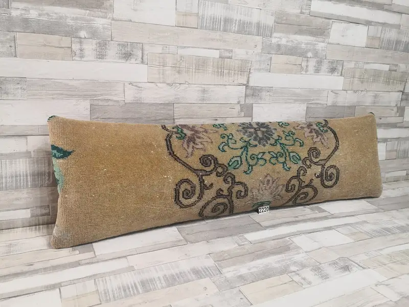 Handgefertigtes Wollkissen, braunes und grünes geometrisches Rechteckkissen