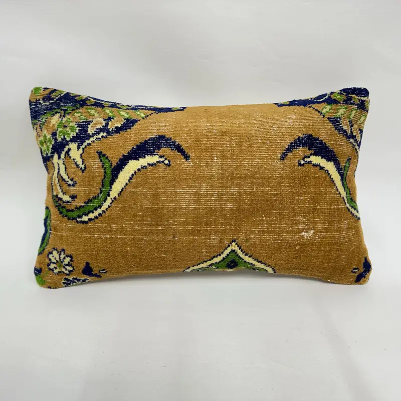 Braunes & bronzefarbenes Blumenkissen, handgefertigtes rechteckiges Kissen