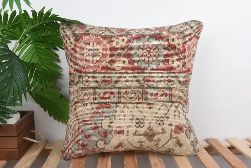 Beigefarbenes Southwestern-Wurfkissen mit roten Akzenten, handgefertigtes Vintage-Kissen