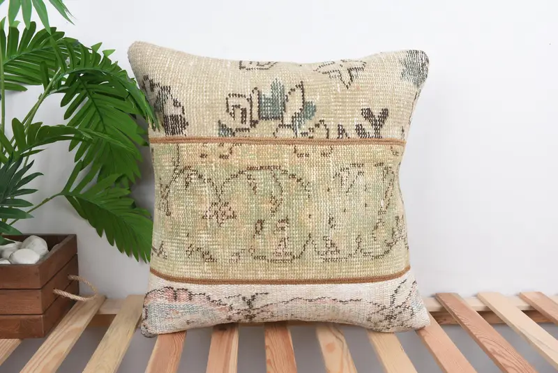 Beige & braunes Patchwork-Wurfkissen, 20x20 besticktes Vintage-Kissen