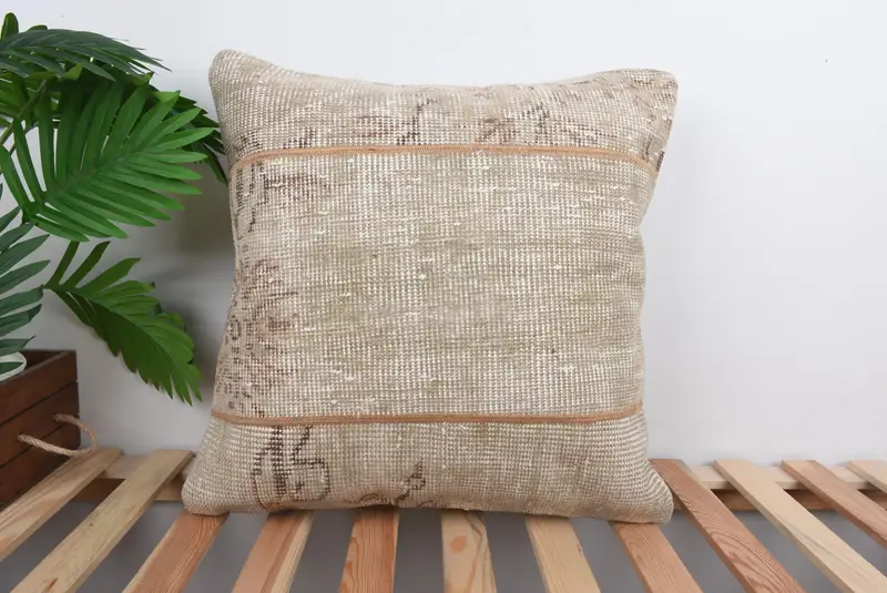 Beige & braunes Patchwork-Wurfkissen, besticktes Vintage-Kissen