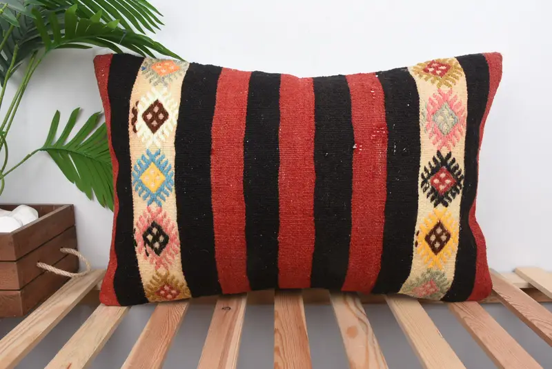 Rot-braun gestreiftes Kissen, 16x24 besticktes Wurfkissen
