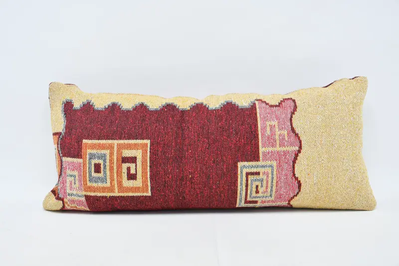 Handgefertigtes besticktes Paisley-Kissen, Vintage-Kissen in Rot und Rosa