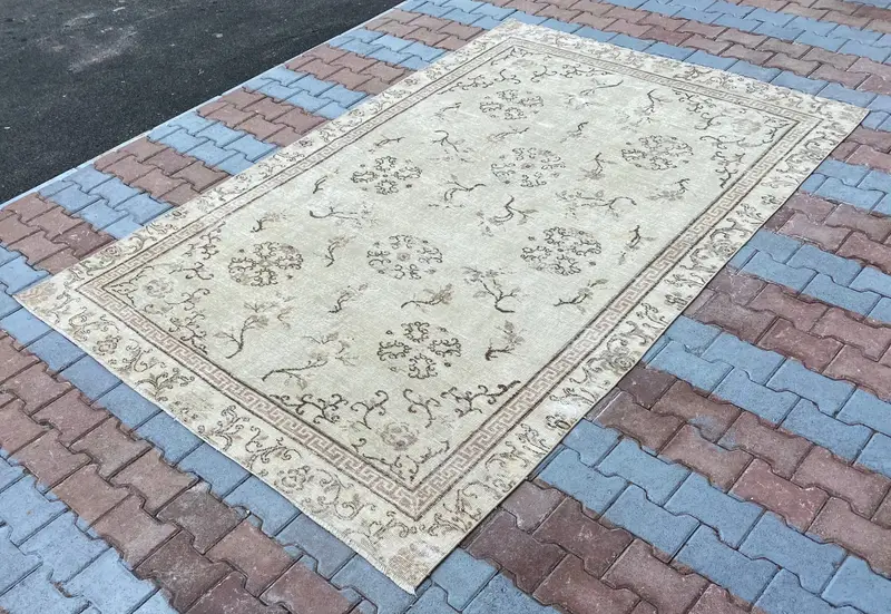 Eleganter beige-brauner Blumenteppich, 180 x 270 cm, schickes Dekor