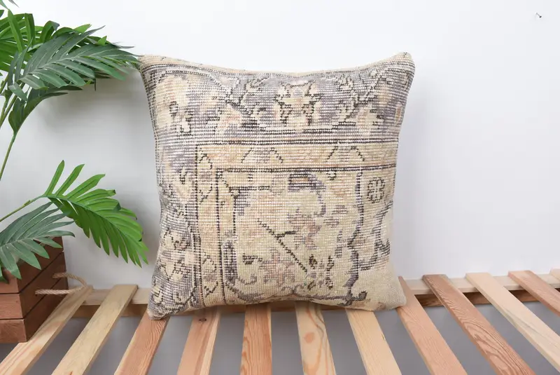 Beige besticktes Kissen im Südwesten, 18x18 Vintage Wurfkissen