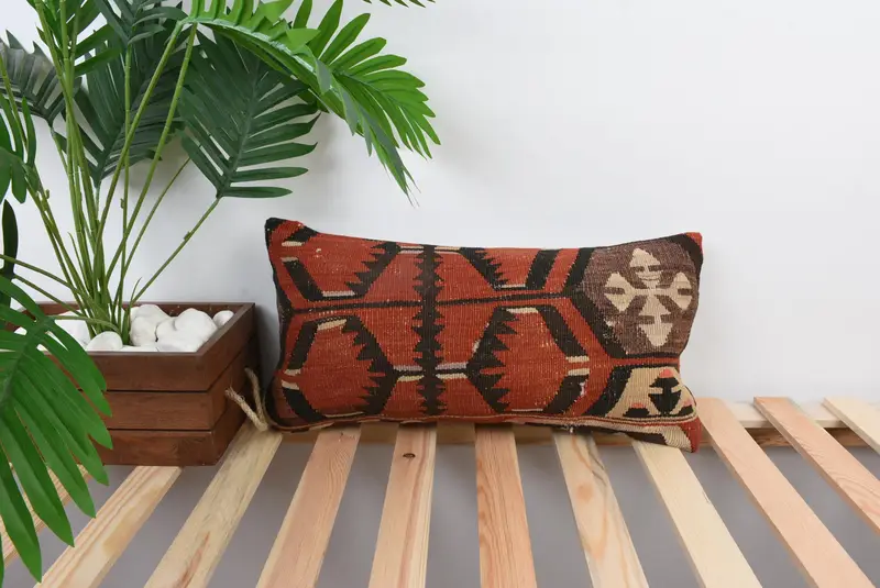 Geometrisches Kissen in Orange und Braun, handgefertigtes Vintage-Kissen