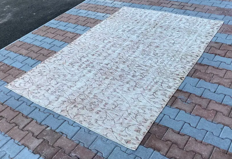 Teppich in Braun und Beige, 5,8 x 8,9 Fuß, florales und geometrisches Design
