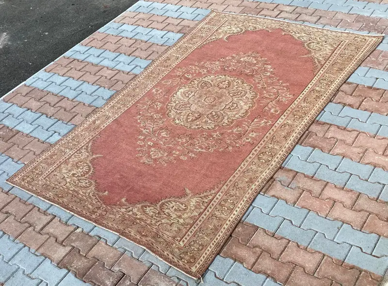 Kupfer- und beigefarbener Teppich, 5,5 x 9,8 Fuß, florales und geometrisches Design