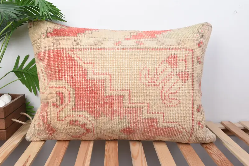 Beige & rotes Southwestern-Wurfkissen, handgefertigtes besticktes Kissen