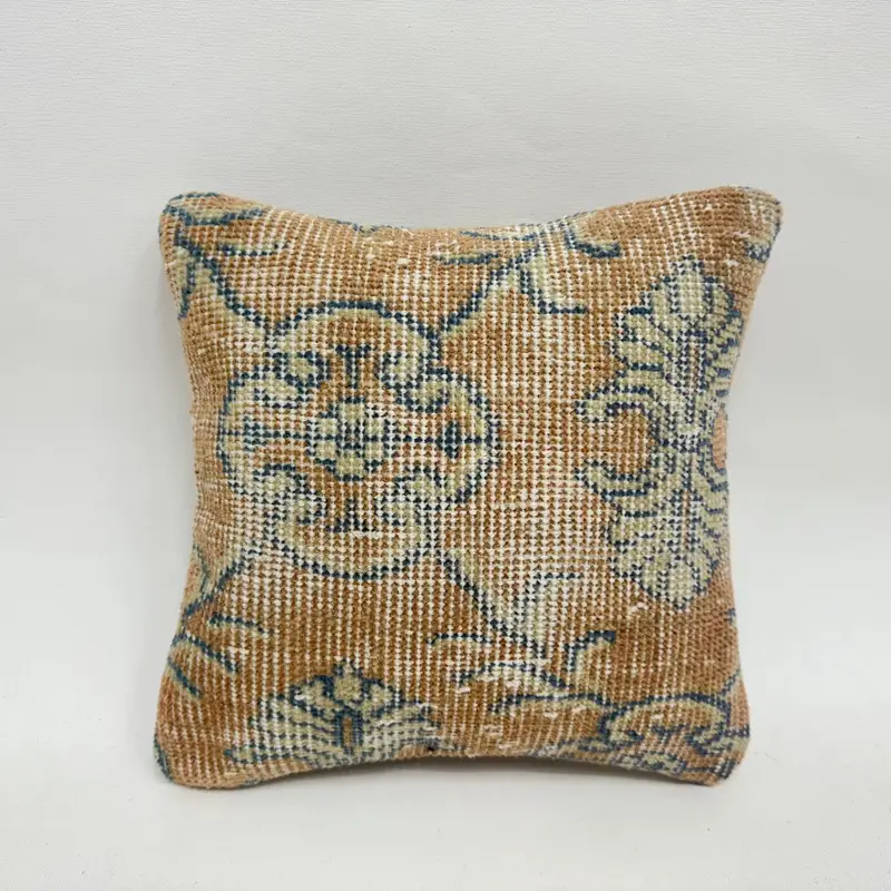 Grünes und beiges Leinen-Wurfkissen, besticktes Vintage-Kissen
