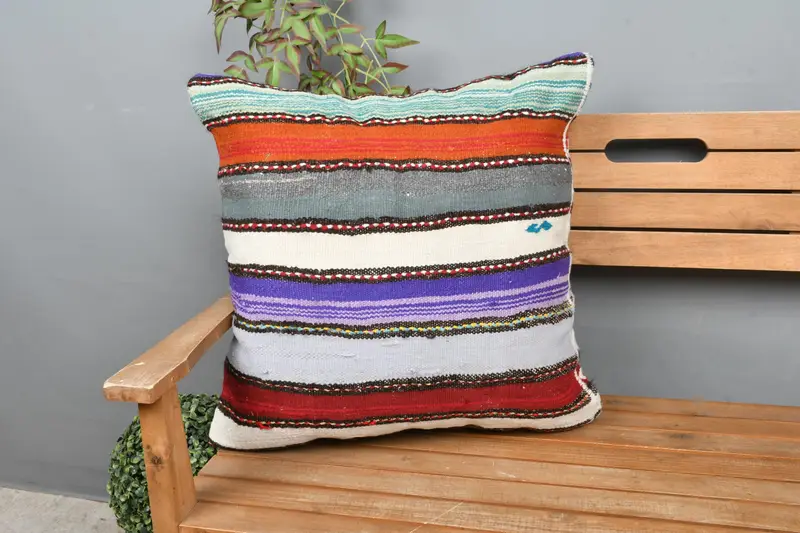Rustikales gestreiftes Kissen, 24x24 besticktes Wurfkissen