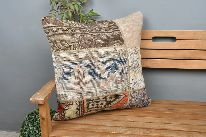 Rot-braunes Patchwork-Wurfkissen, 24x24 besticktes Kissen