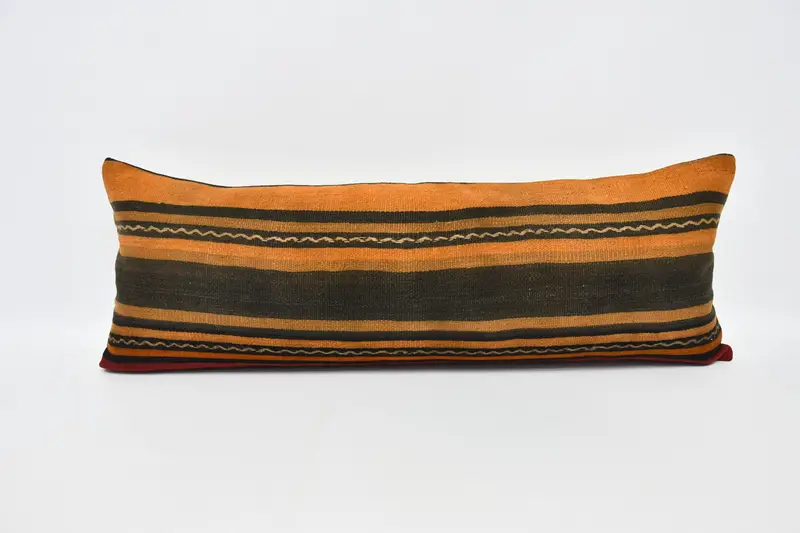 Handgefertigtes gestreiftes Wurfkissen, 16x42 Orange & Braunes Kissen