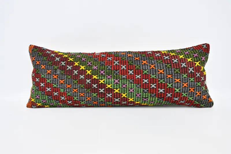 Besticktes 16x42 Wurfkissen, rotes und grünes Vintage-Kissen
