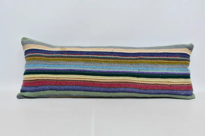 Handgefertigtes gestreiftes Kissen, 16x42 Blau- und Rosakissen