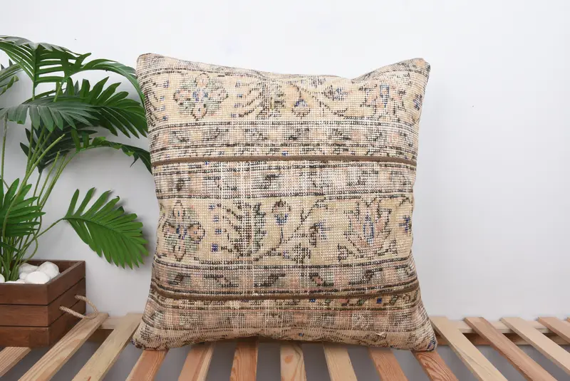 Beige & braunes Patchwork-Wurfkissen, handgefertigtes besticktes Kissen