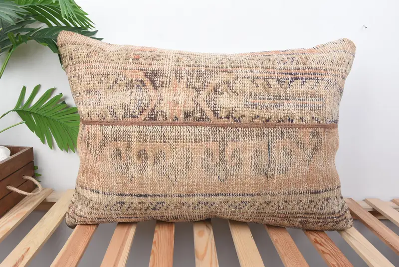 Beige & braunes Patchwork-Wurfkissen, 20x28 handgemachtes Kissen