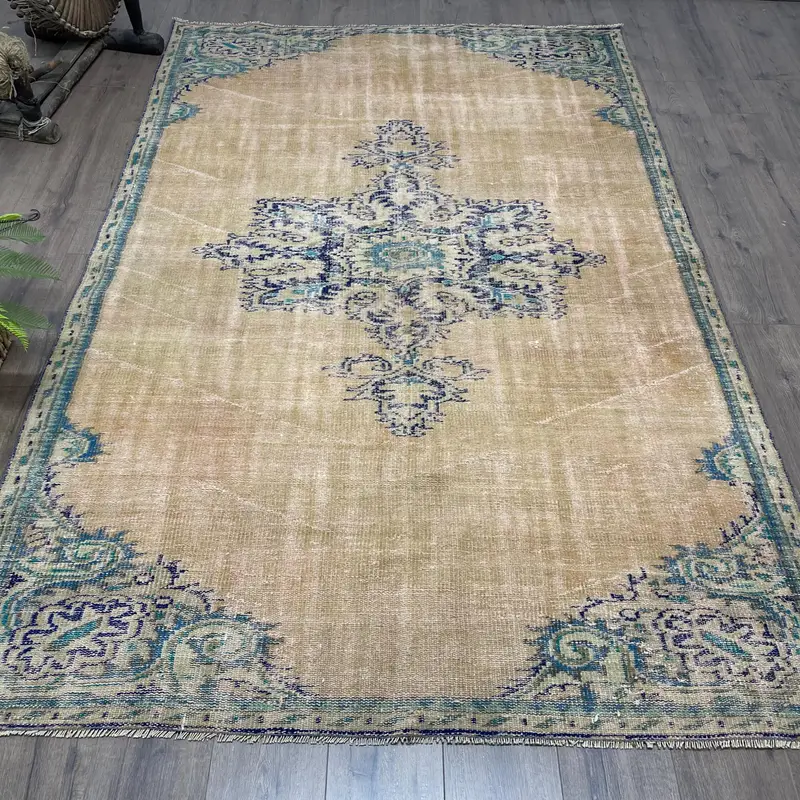 Lebendiger 5,4 x 8,5 Fuß großer Teppich, Patchwork-Orange und Grün