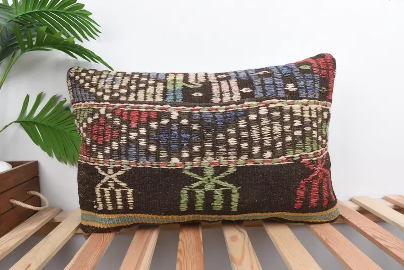 Blaues Southwestern Wurfkissen, 16x24 besticktes Vintage Kissen