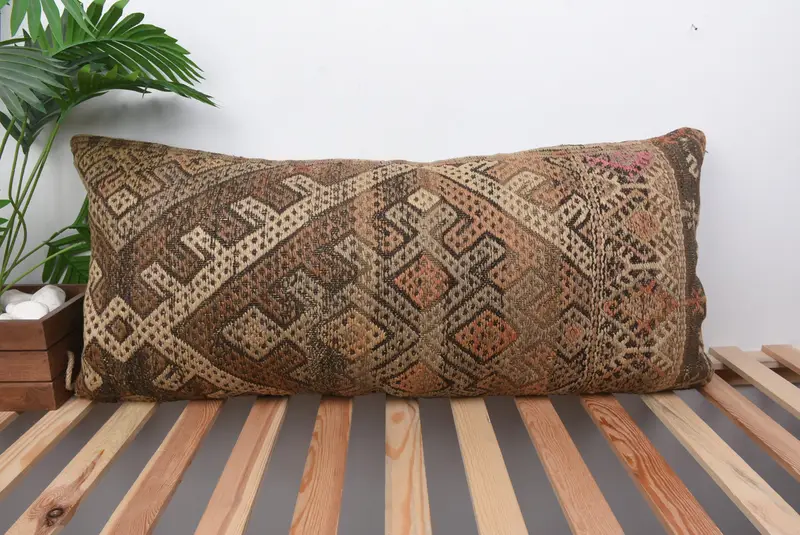 Gesticktes Southwestern-Wurfkissen, beige und braunes Vintage-Kissen