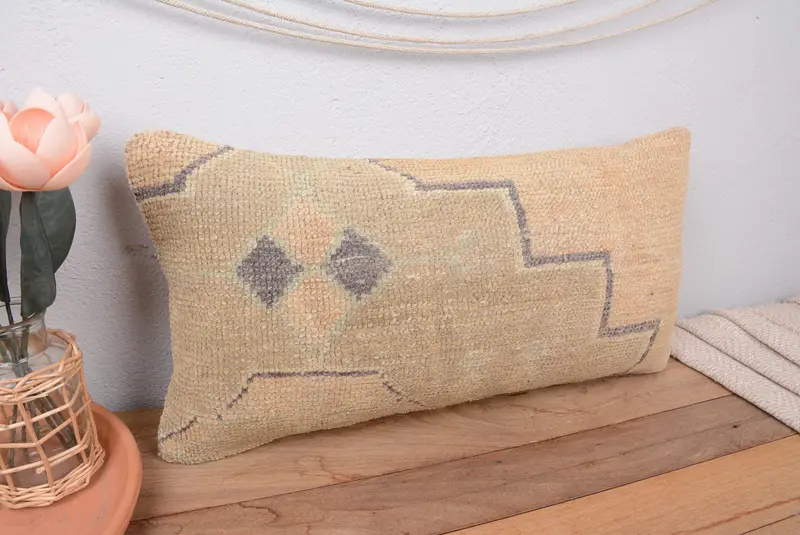Beige besticktes Kissen im Südwesten, 12x24 handgemachtes Wurfkissen