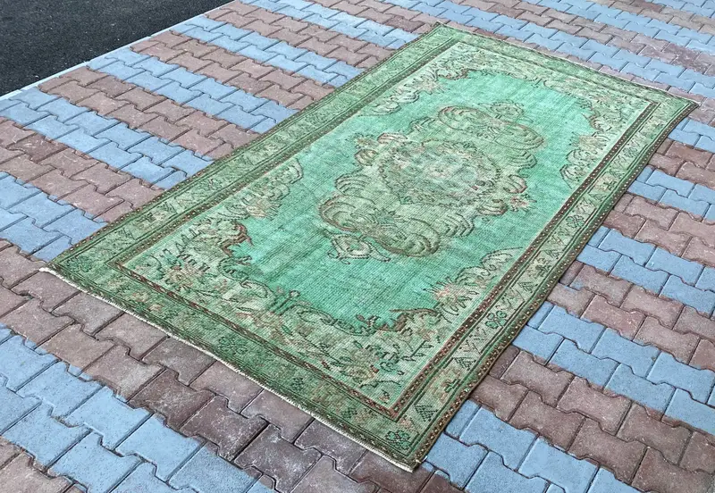 Grüner Blumenteppich, 5,2 x 9,2 Fuß, elegantes Dekor