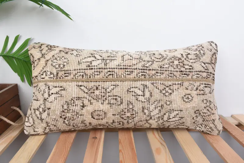 Beige & Braunes Patchwork-Wurfkissen, 12x24 handgemachtes Kissen