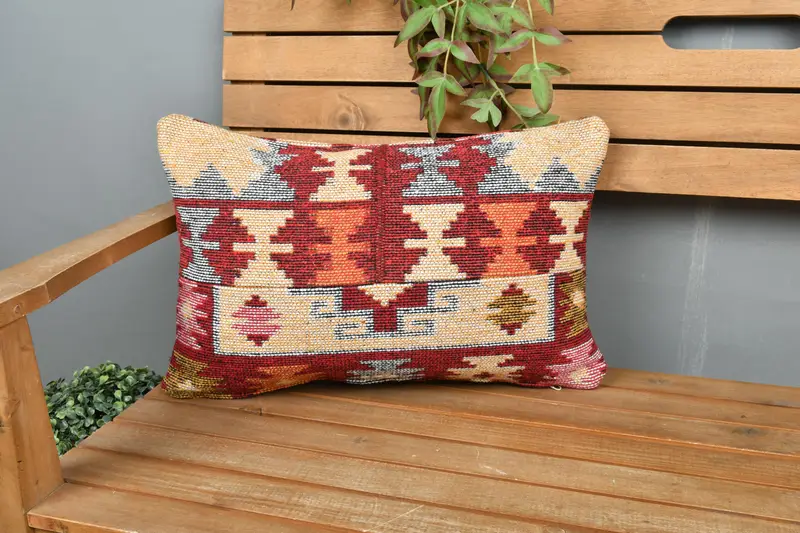 Geometrisches 12x20 Wurfkissen, handgefertigtes besticktes Kissen