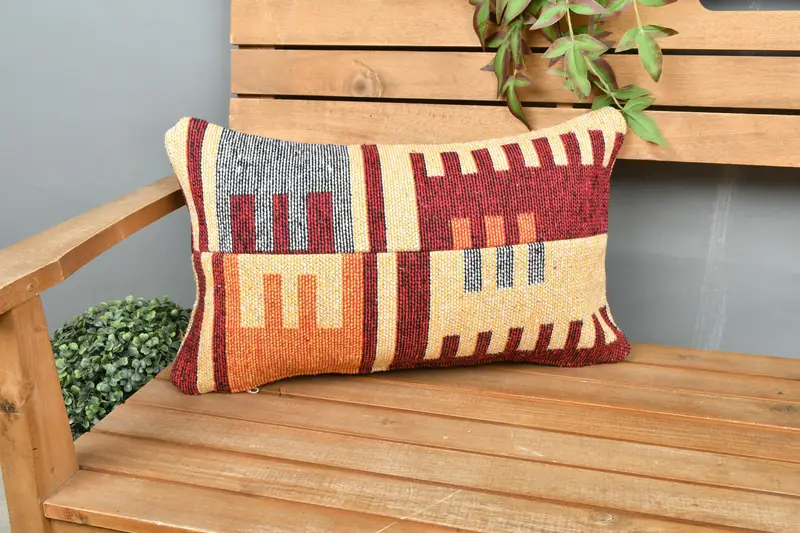 Orange & Rot Southwestern Besticktes Kissen, Vintage 12x20 Wurfkissen