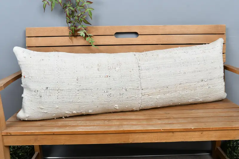 Besticktes Beige Patchwork Kissen, handgemachtes 16x48 Wurfkissen