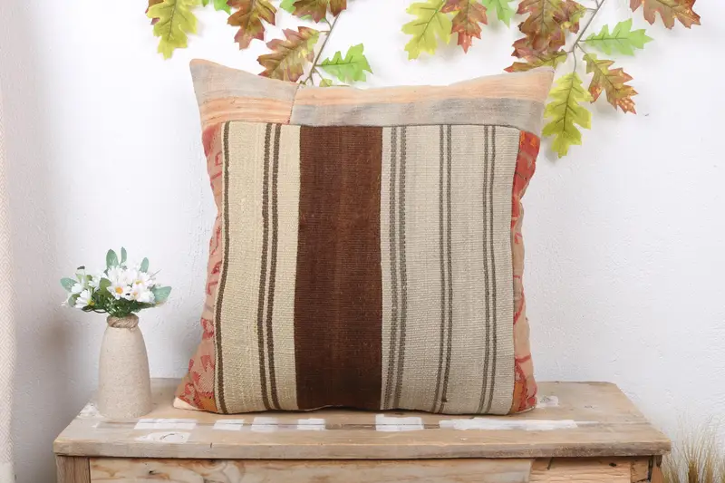 Beige-braunes Patchwork-Wurfkissen, 22x22 besticktes Kissen