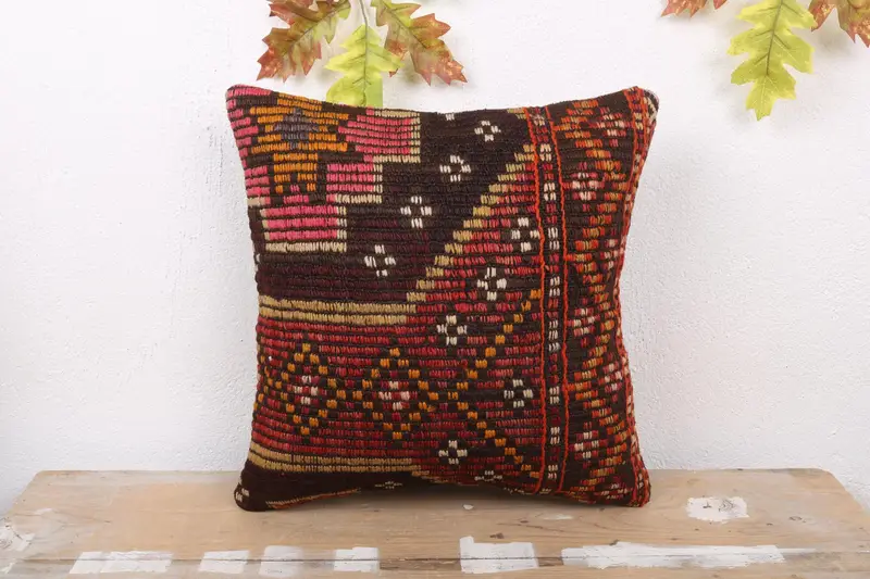 Rot & Orange besticktes Wurfkissen, 16x16 handgemachtes geometrisches Kissen