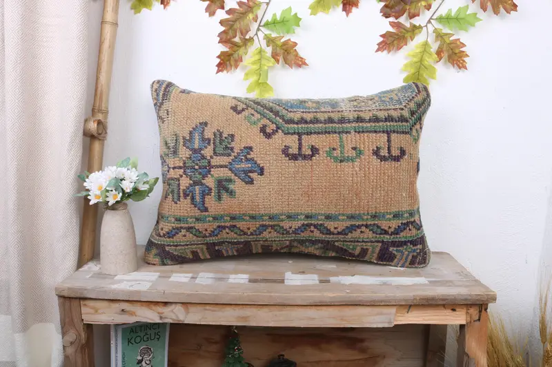 Orange & Bronze besticktes Wurfkissen, 16x24 handgemachtes Kissen
