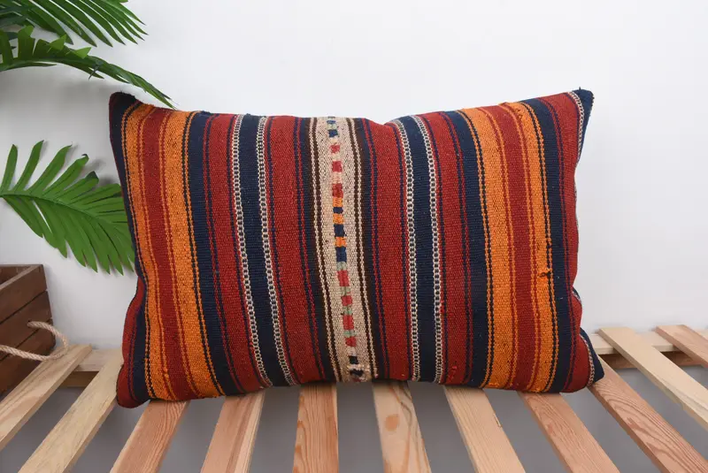 Rot & Orange gestreiftes Kissen, handgefertigtes besticktes Kissen