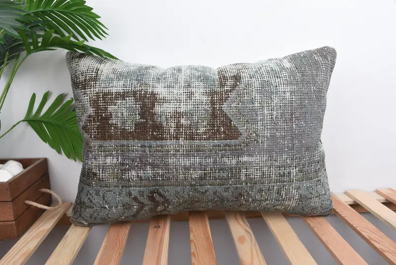 Grau-braunes Southwestern-Wurfkissen, 16x24 besticktes Kissen