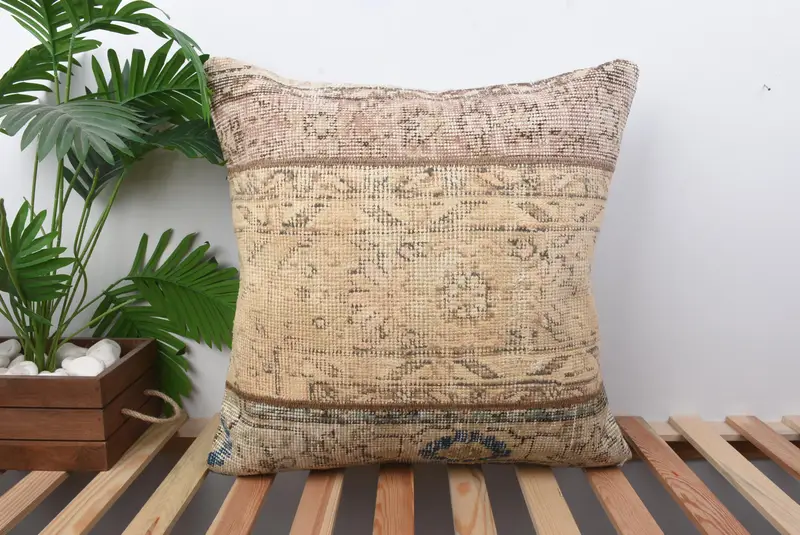 Beige-braunes Patchwork-Wurfkissen, 22x22 besticktes Kissen