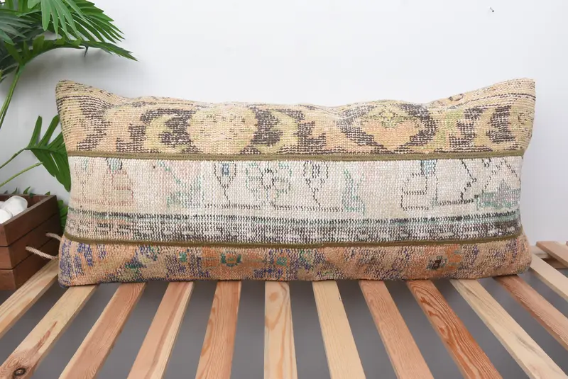 Orange & Beige Patchwork Kissen, handgemachtes Leinenkissen