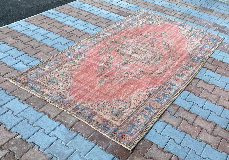 Roter und blauer Blumenteppich, 5,4 x 8,5 Fuß, elegantes Dekor
