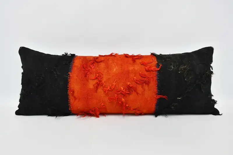 Gesticktes gestreiftes Wurfkissen, 16x42 handgefertigtes Kissen mit Vintage-Charme