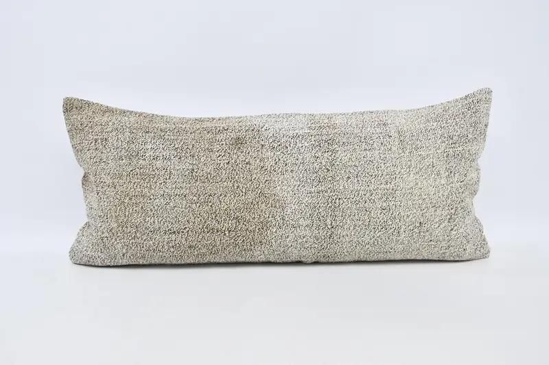 Handgefertigtes braun-weiß kariertes Kissen, 16x36 Vintage Kissen