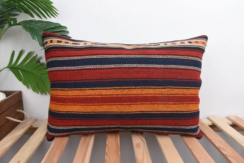 Rot & Orange gestreiftes Kissen, handgefertigtes besticktes Kissen