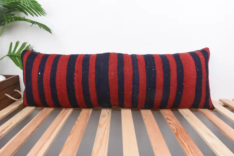 Rot gestreiftes Kissen mit bronzefarbenen Akzenten, handgefertigtes rechteckiges Kissen