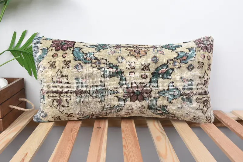 Beige-graues Kissen mit Blumenstickerei, vielseitiges 12x24-Wurfkissen