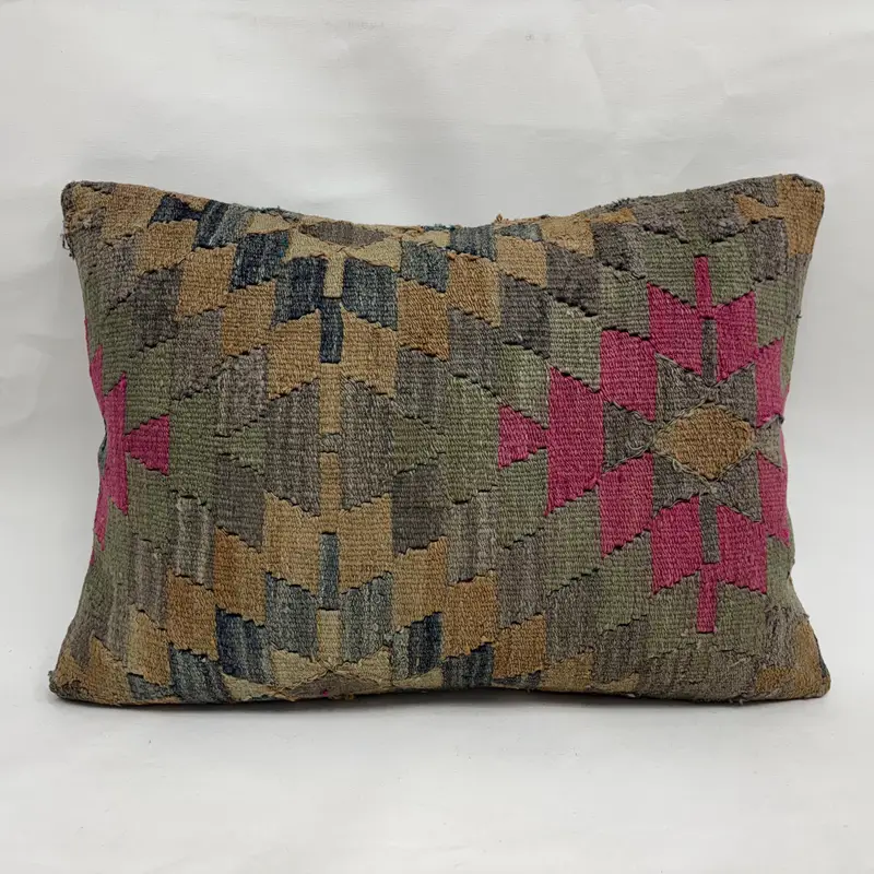 Braunes und rosa geometrisches Kissen, 20x28 handgemachtes Wurfkissen